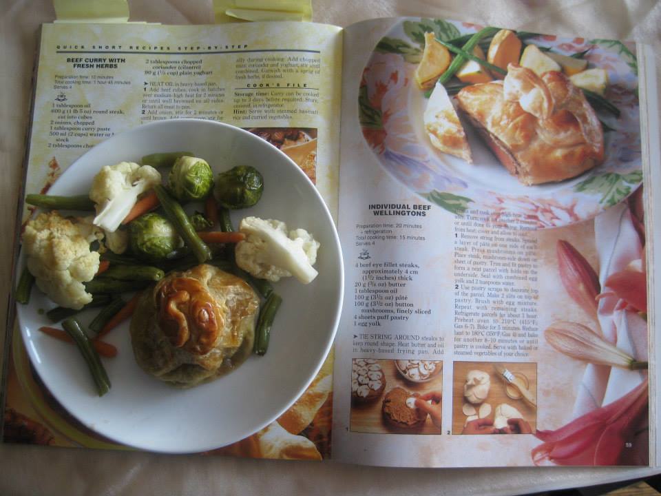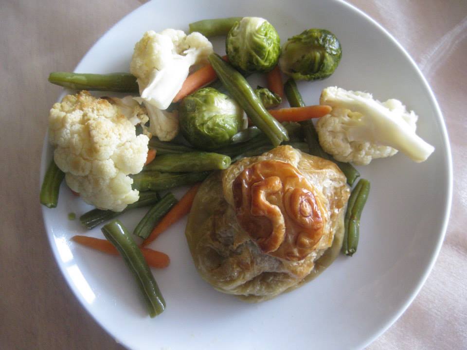Menu: Creamed Fennel Soup, Individual Beef Wellingtons, Roasted Vegetables, Poached Pears with Ginger Sabayon Sauce, Chocolate with 59% Cocoa