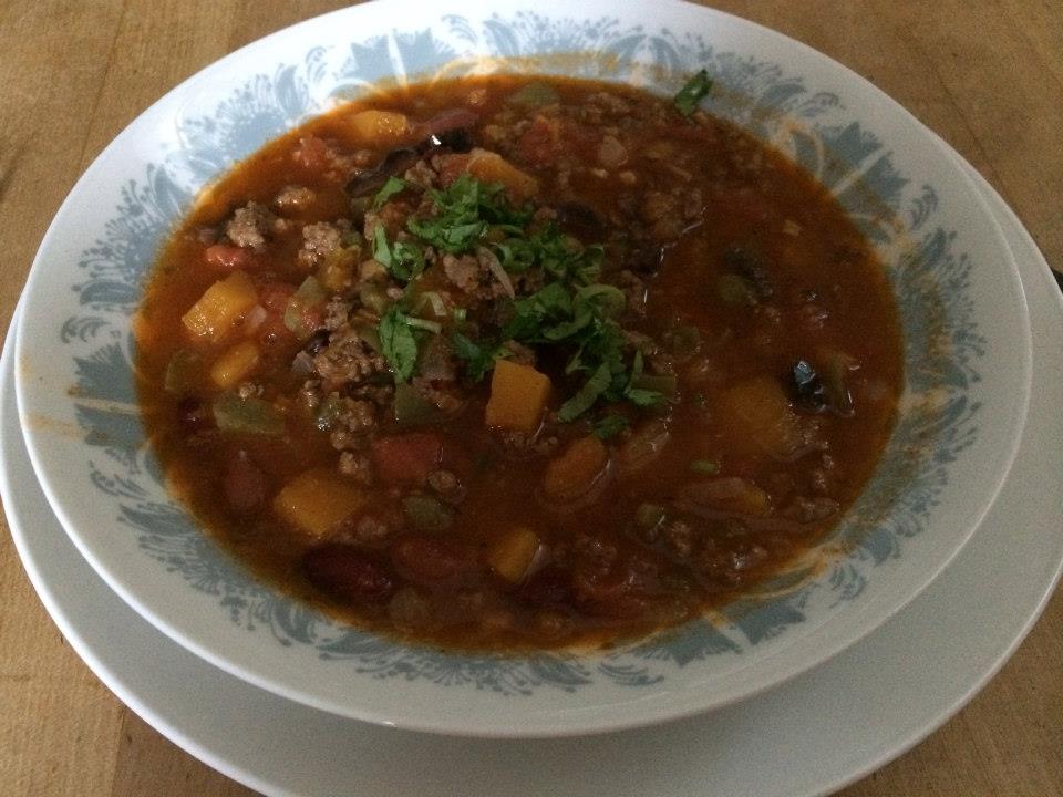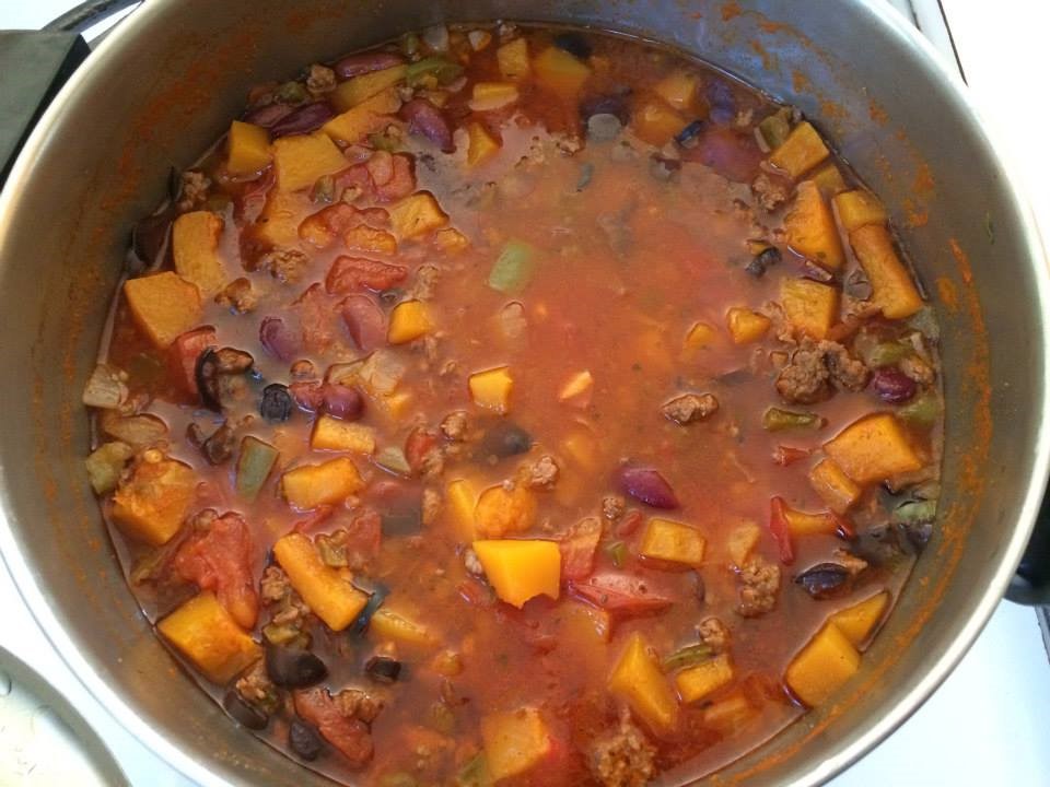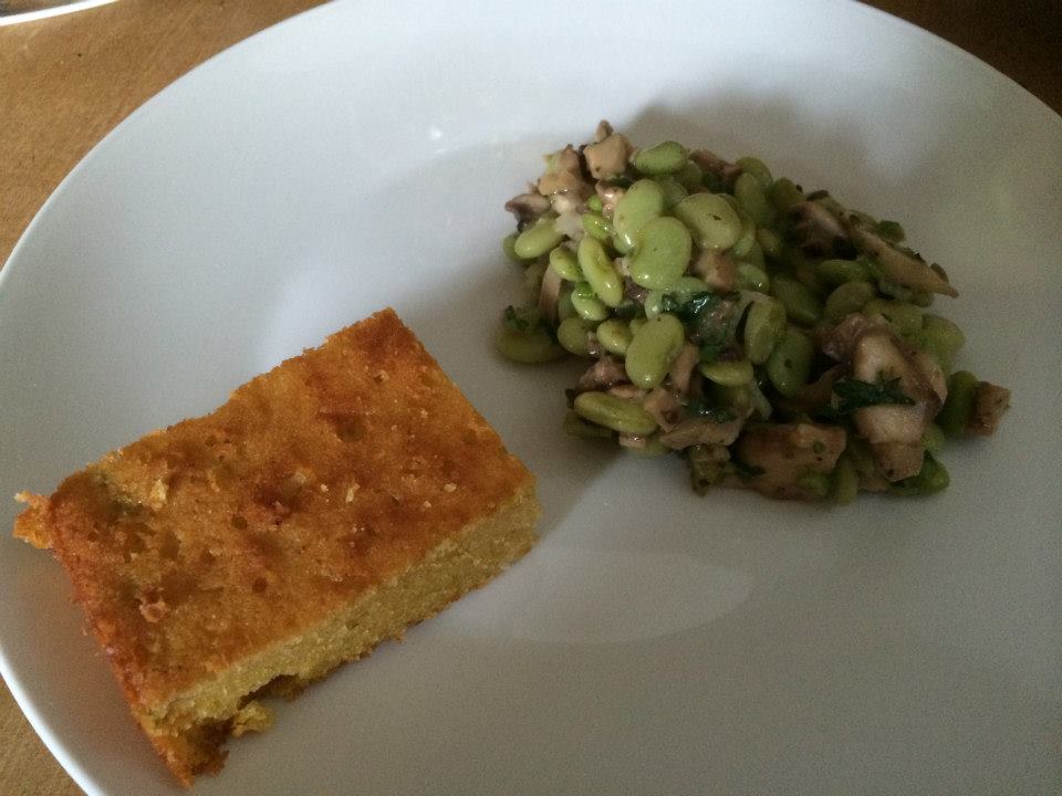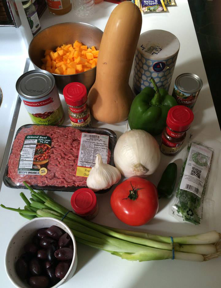 Menu:Excellent Cornbread, Butternut Squash - Beef Chili, Italian Mushroom and Lima Bean Salad with Classic Garlic Dressing, Cubana Chocolate Cake with Chocolate Cream Cheese Frosting