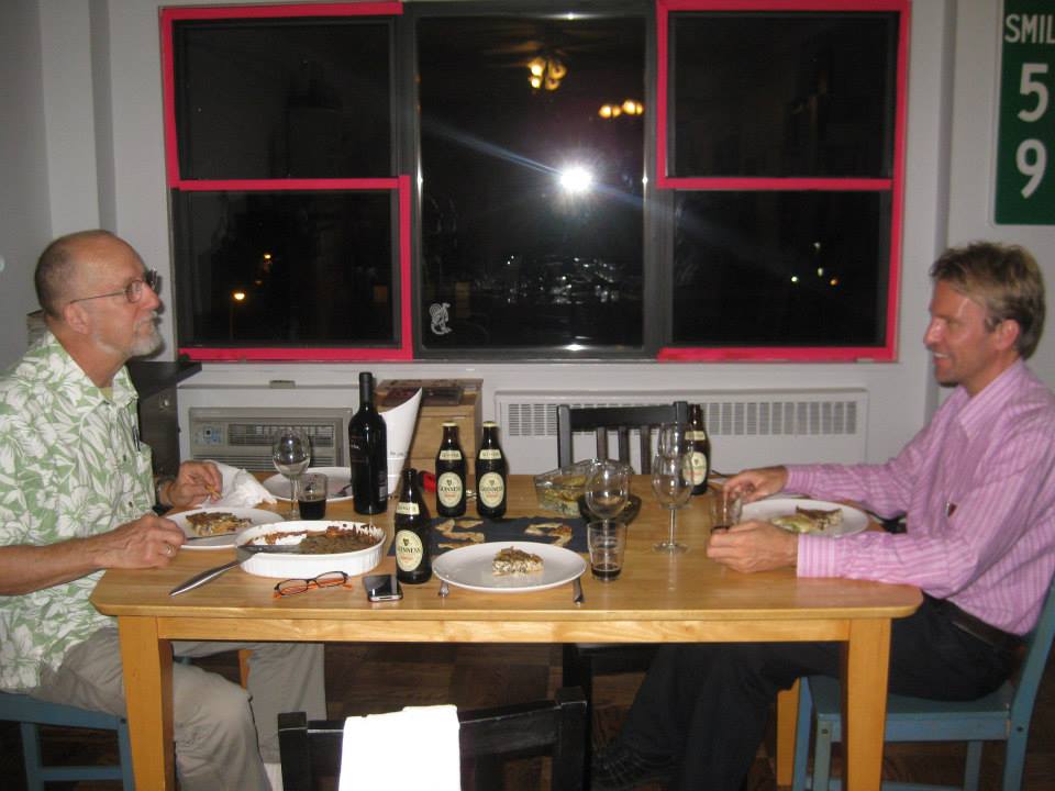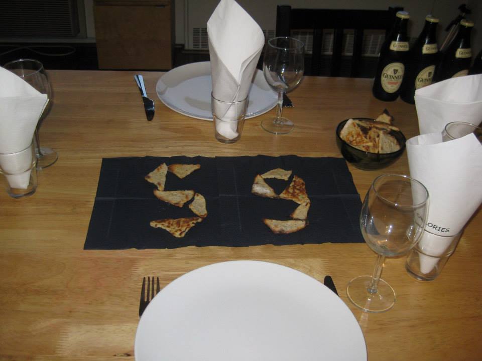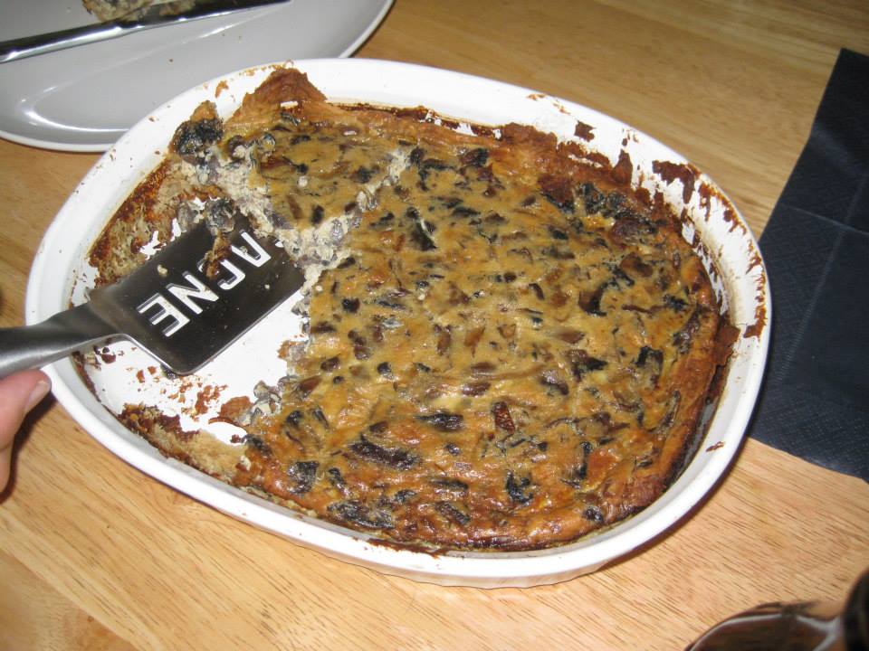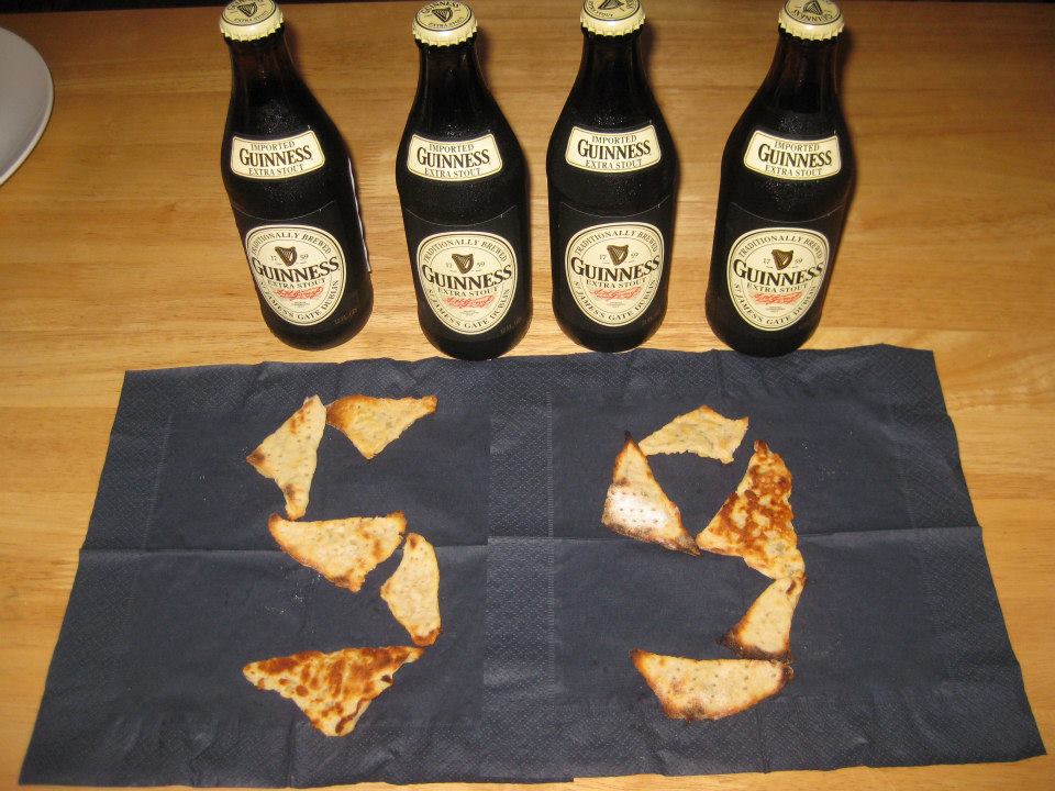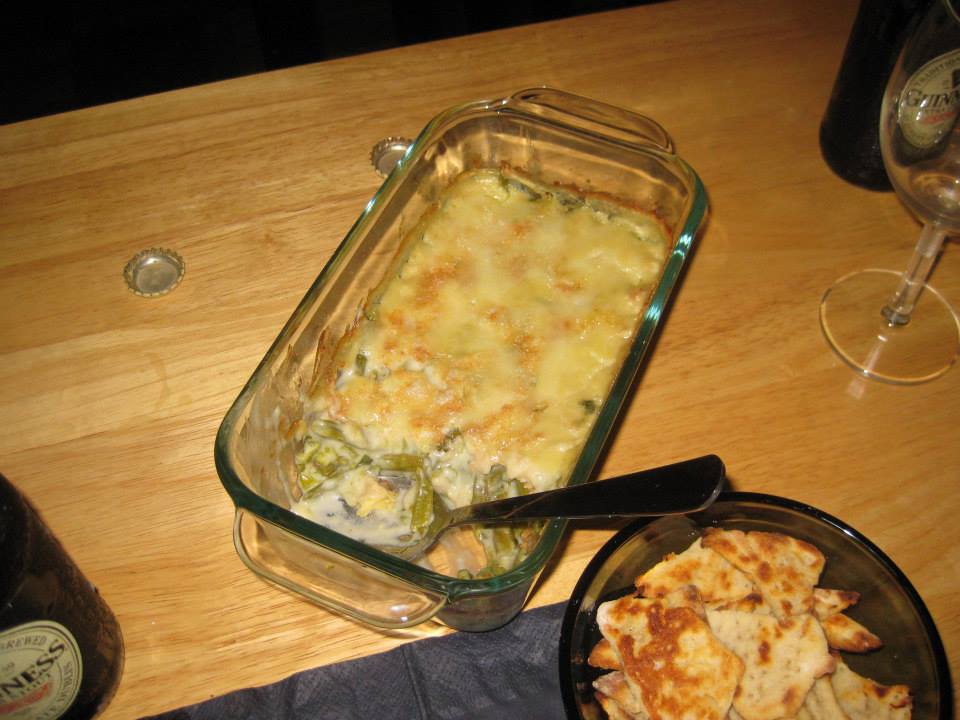 Menu: Guinness Beer, Lorn's Potato Scones, Mushroom Quiche, Curry Creamed Asparagus, Plumb and Apple Cobbler