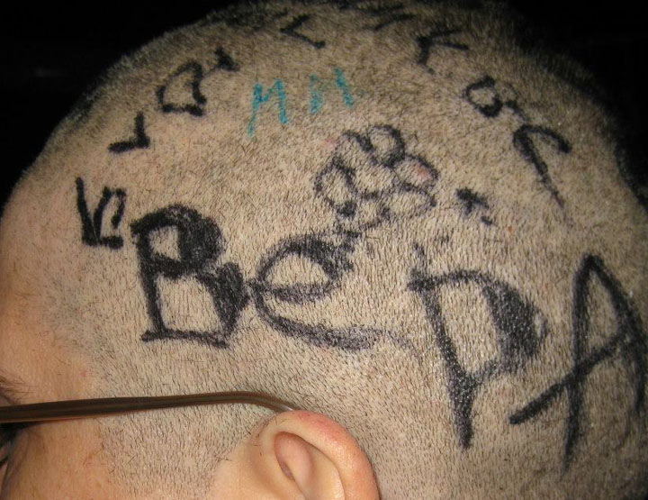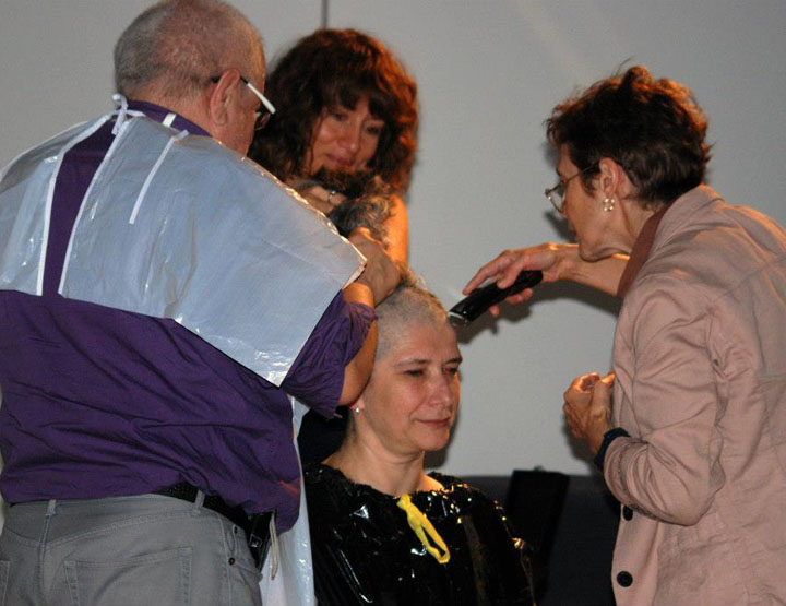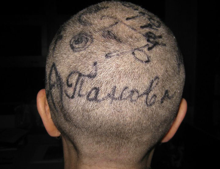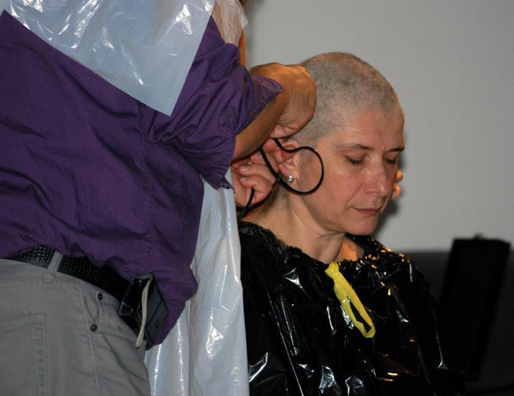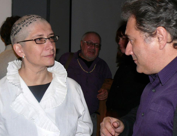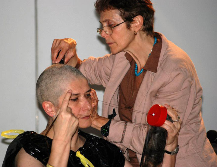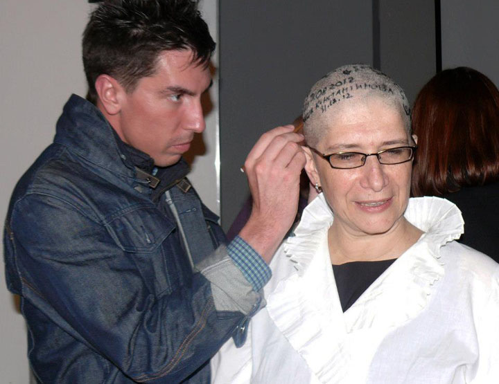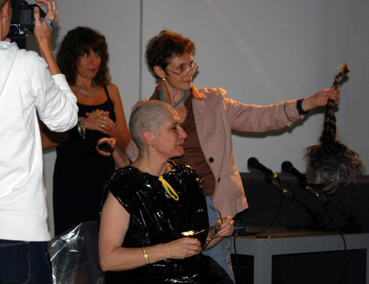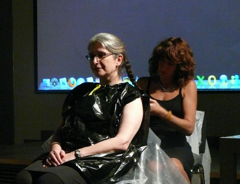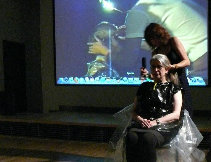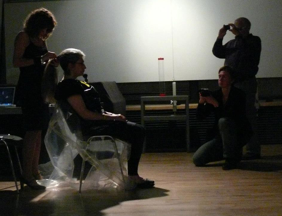 In 2012 The Quadrennial Shaving Performance was invited by Irina Gorlova and Leonid Bazhanov to the National Center for Contemporary Art in Moscow, 20 YEARS AFTER the Shaving for America, farewell performance in Moscow in 1992. Angelina Panova, Rostislav Egorov, Vladimir Salnikov and Nina Kotel, who attended the 1992 shaving in Moscow, were involved again. Angelina made the braid and Rostislav took pictures as they did 20 years before. Vladimir and Nina cut BRAID#7. Curator: Natalya Goncharova. |