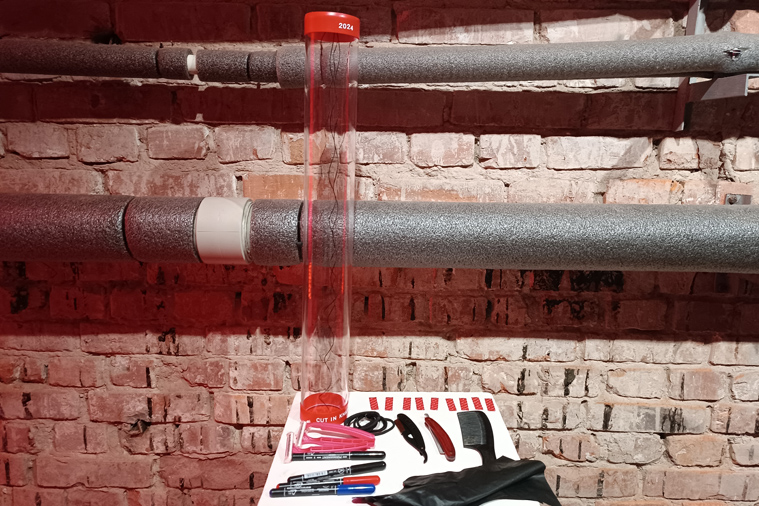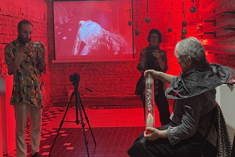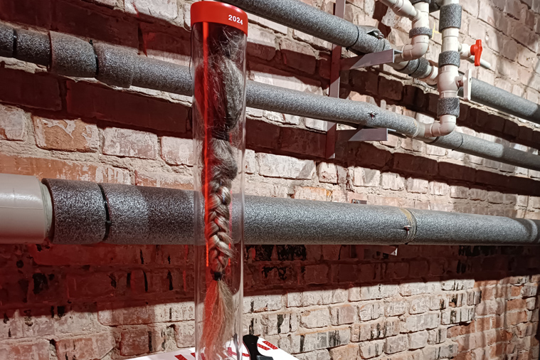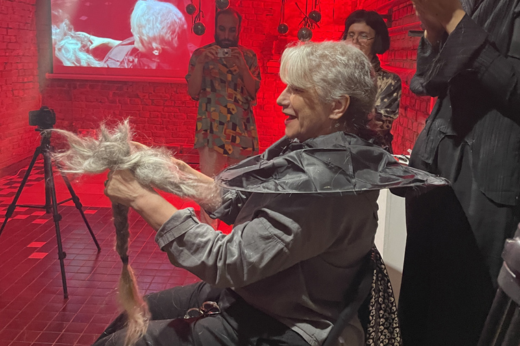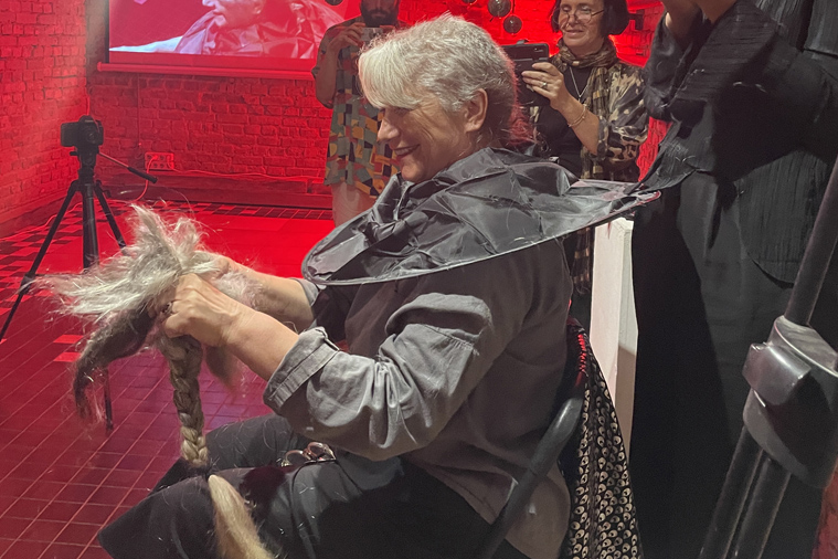 Every four years on the same date, Irina harvests her hair into a collection of braids. First haircut was in 1984 in Kharkiv when she was leaving her hometown after graduating from Kharkiv Academy of Art and Design. Two artist friends, Masha Glushchenko and Lena Kudinova, came for a farewell party. Irina asked them to cut off her hair as a symbolic act for starting a new time in life. It later turned into the Quadrennial Performance every leap year and became a project about the duration of life. Hair is the only part of the human body that shows time in length, like a timeline. The first hair cut in Kharkiv was not saved. The Braids Collection started in 1988 with the 1984-1988 braid. When, at the 40 Years After exhibition at the Municipal Gallery ArtPidval (ArtBasement) Irina installed her braids, she realized that they measured the time of her life outside of Kharkiv. In 2004 Irina came to Kharkiv for the 20 Years After Quadrennial Performance (Palitra Gallery, curator Andrei Avdeenko). The 40 Years After performance was planned in Kharkiv before the war in Ukraine. Kharkiv is close to the border with the Russian Federation. Every missile fired from there hits the city within minutes. 40 Years After Performance was about death, suffering, and life under bombardments in existential danger.