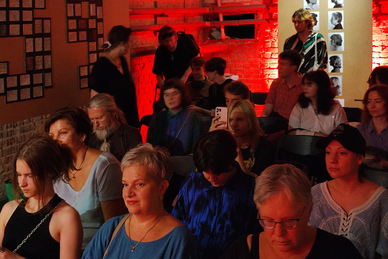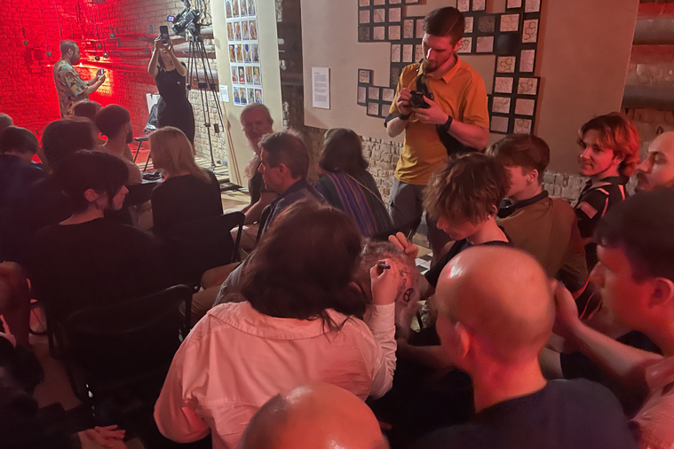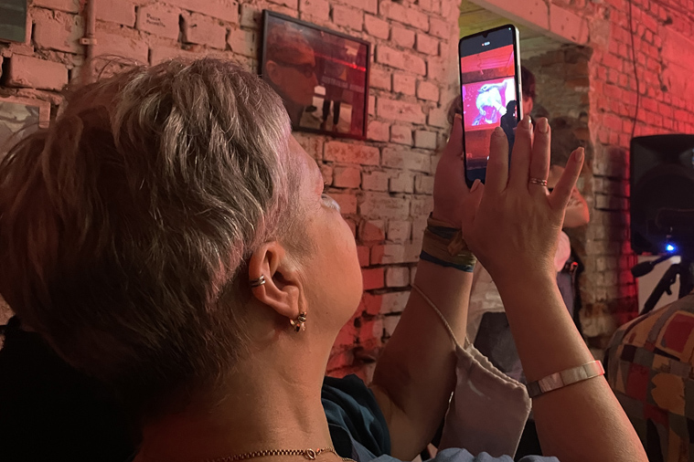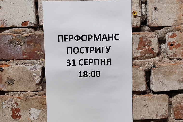 Following the massive bombing of Kharkiv, the day of the performance became a day of sorrow for 8 fallen residents, including a 14-year-old girl and the 18 years old artist Nika, 96 were injured, among them 22 children. The performance started with the Moment of Silence. In memory of a friend, experimental composer Phill Niblock, who died earlier that year, the performance was accompanied with his musical composition, Stosspeng, and video screening of the closeup of real-time recording.