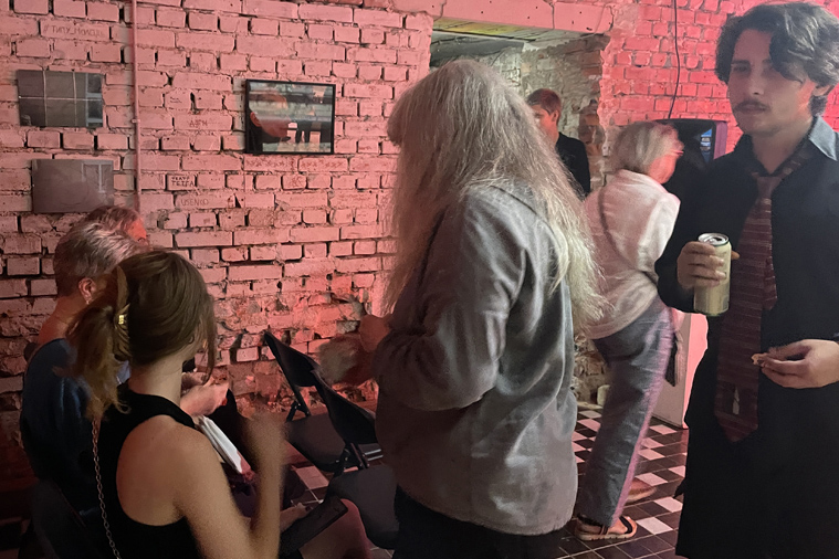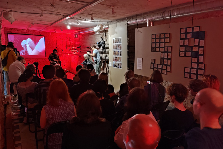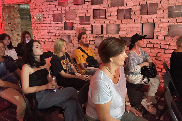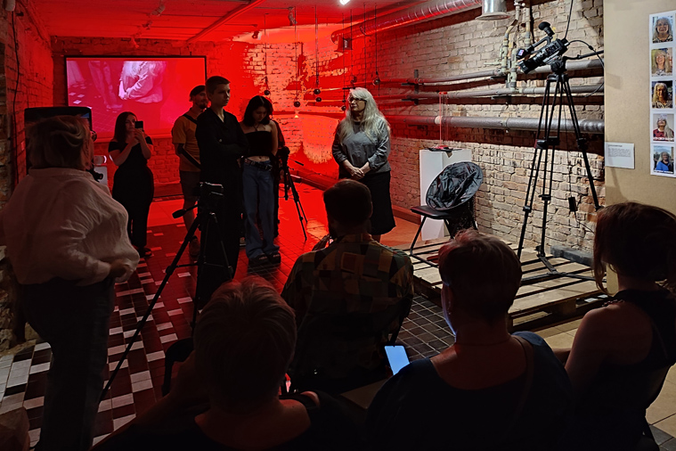 The Municipal Gallery, founded in 1996, featured two locations: the refurbished deep WWII bomb shelter, which served as the experimental area ArtPidval (art basement), and a vast main gallery space above it. The main gallery was damaged by the intense shelling of the center of the city, and the gallery's operations were relocated to the ArtPidval. It was safe to have visitors deep underground. The gallery was open 24/7 to serve as a shelter.