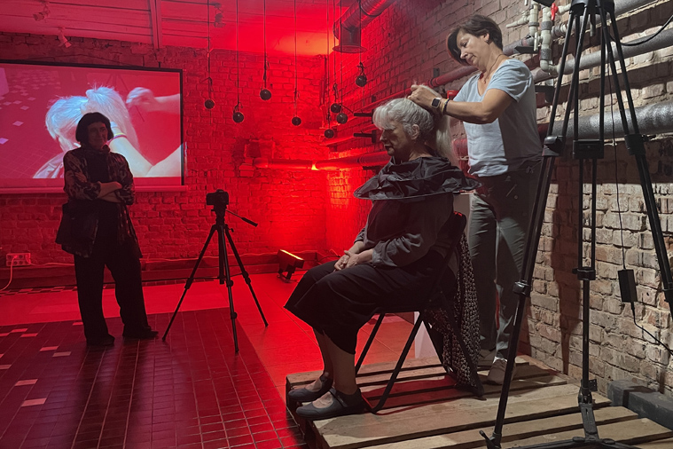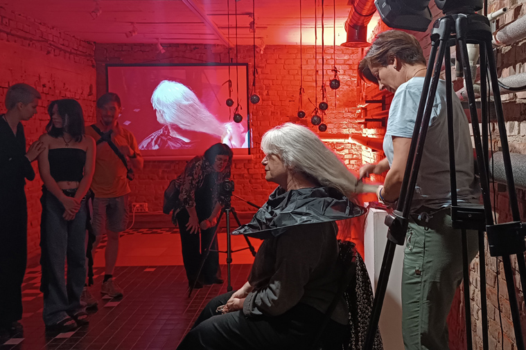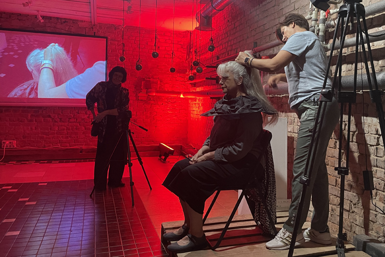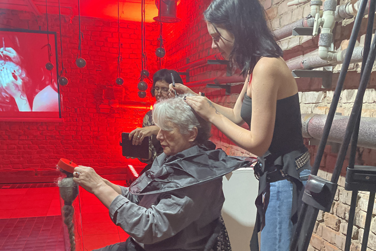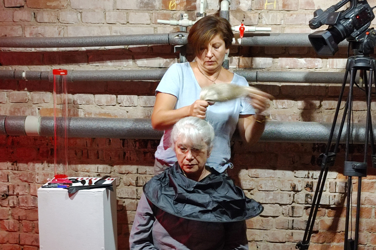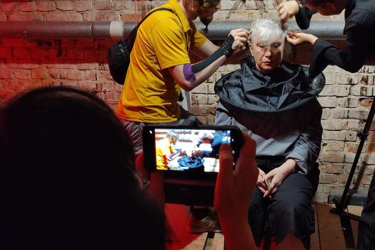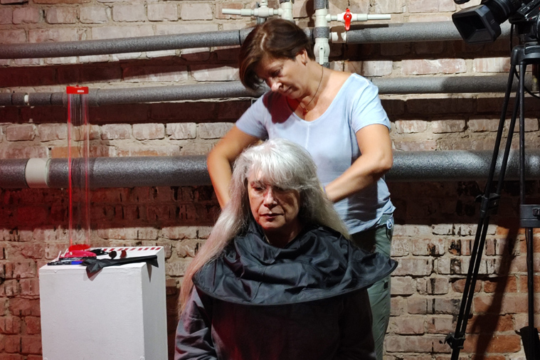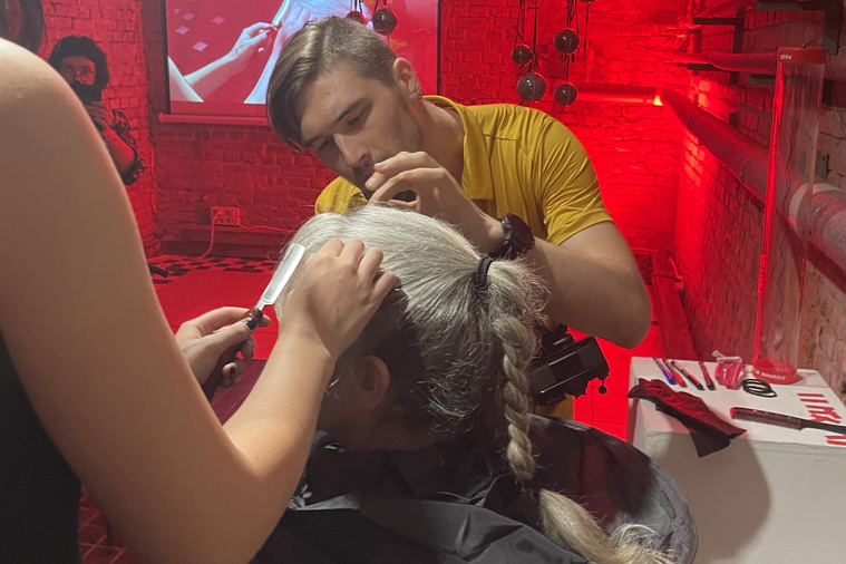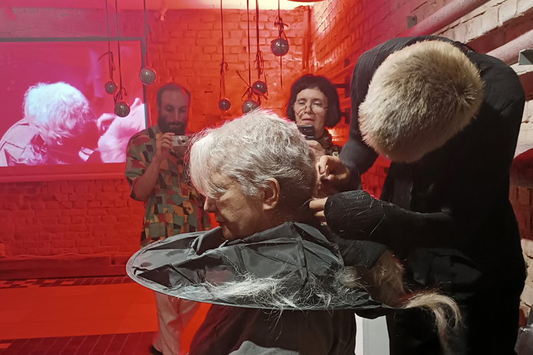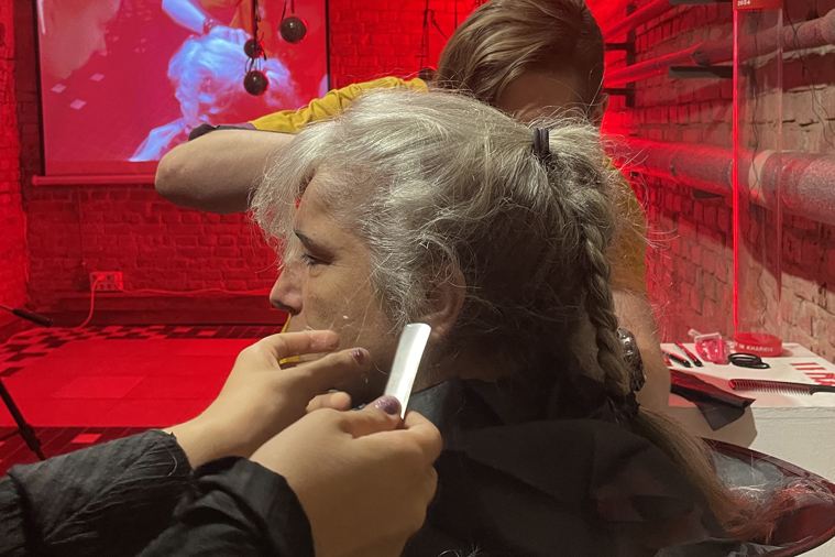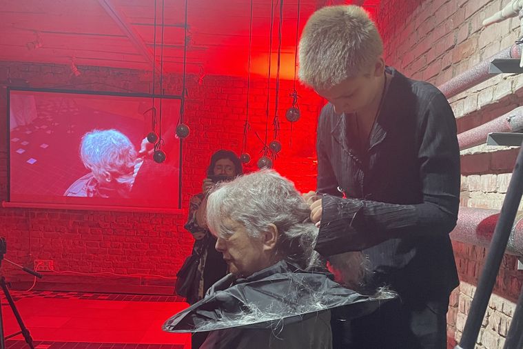 Participants: Irina Danilova (performer), Olena Makhotilo (braider), Maria Kvitma (presenter and haircutter), Maks Mokritsky (haircutter), Sofia Kompaniets (haircutter), Daryna Kosichenko (photographer and haircutter). Photos by Mikhailo Kvitka and Daryna Kosichenko.