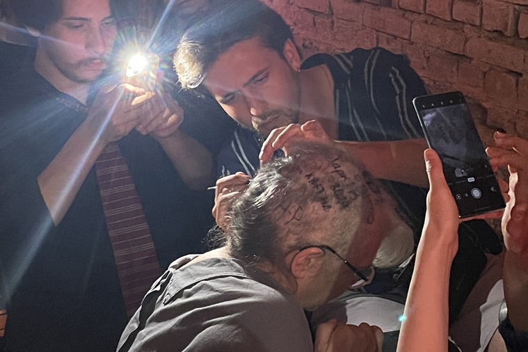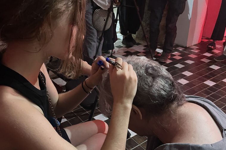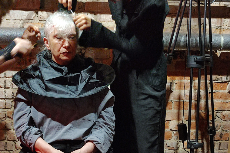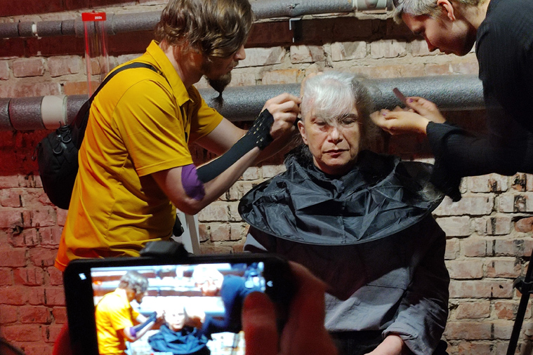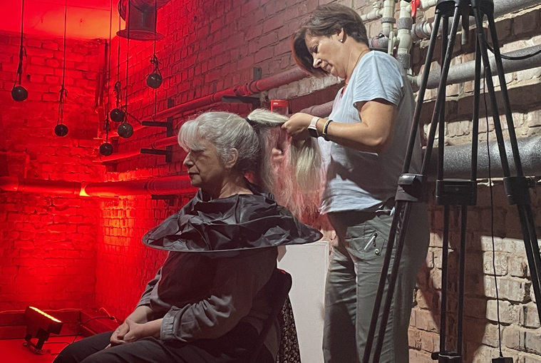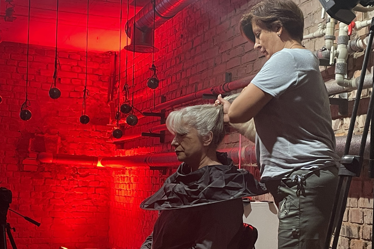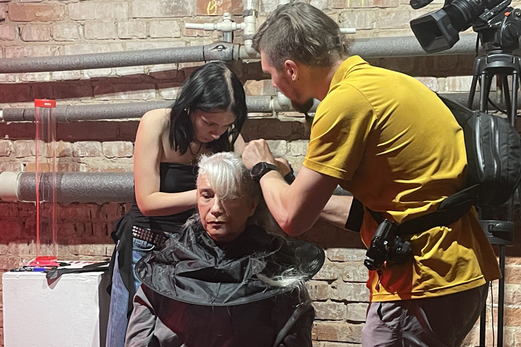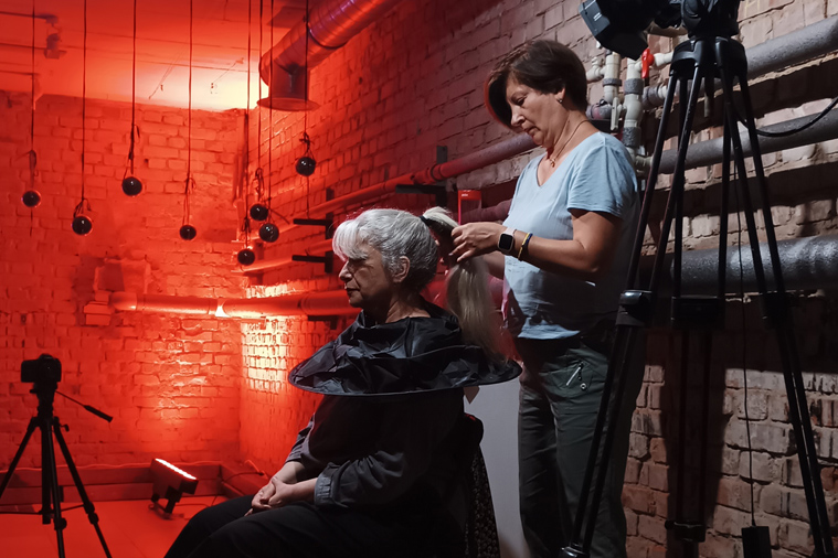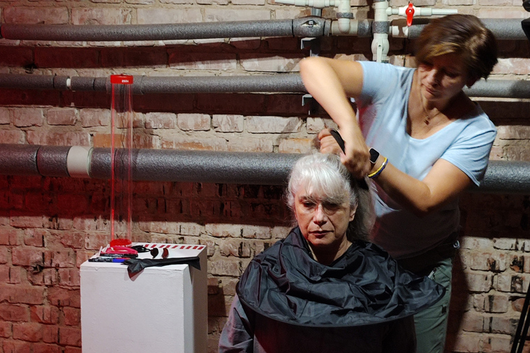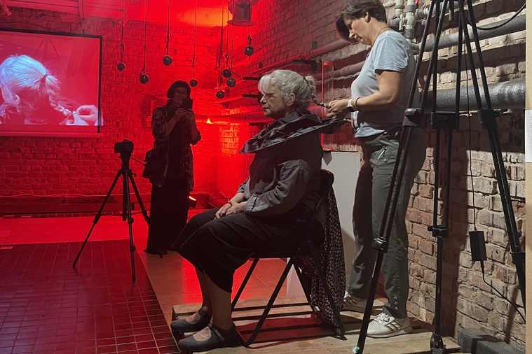 Participants: Irina Danilova (performer), Olena Makhotilo (braider), Maria Kvitma (presenter and haircutter), Maks Mokritsky (haircutter), Sofia Kompaniets (haircutter), Daryna Kosichenko (photographer and haircutter). Photos by Mikhailo Kvitka and Daryna Kosichenko.